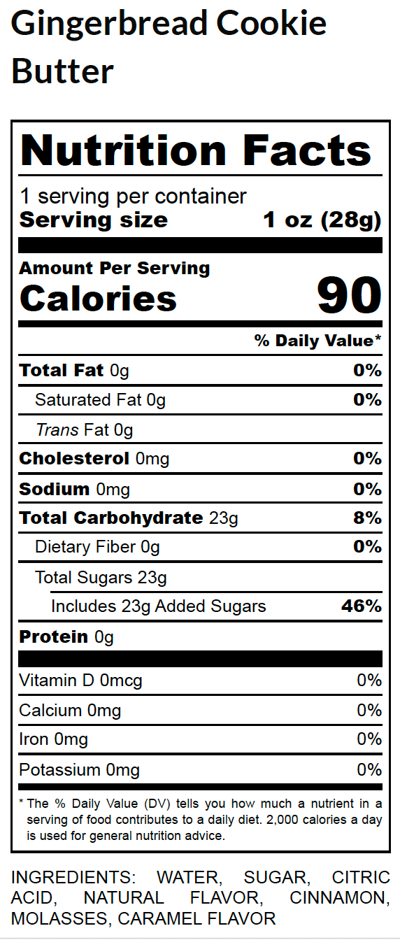 The Gingerbread Cookie Butter flavored syrup includes 10 packets, features flavor notes of ginger, cinnamon, nutmeg, molasses, brown sugar and caramel. Each stand up pouch contains (10 ) single-serve packet with 2 tbsp of the flavored syrup, perfect for adding a unique twist to coffee, tea, matcha, mocktails, cocktails and more!